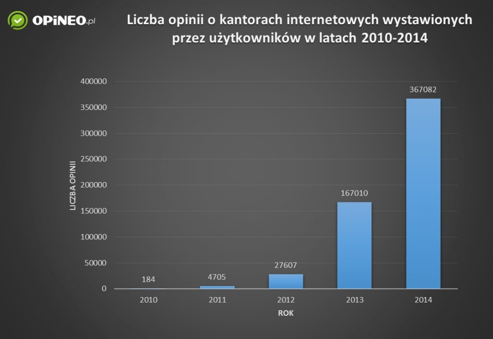 Wraz z wzrostem rynku kantorów online, roÅ›nie też liczba wystawianych opinii.